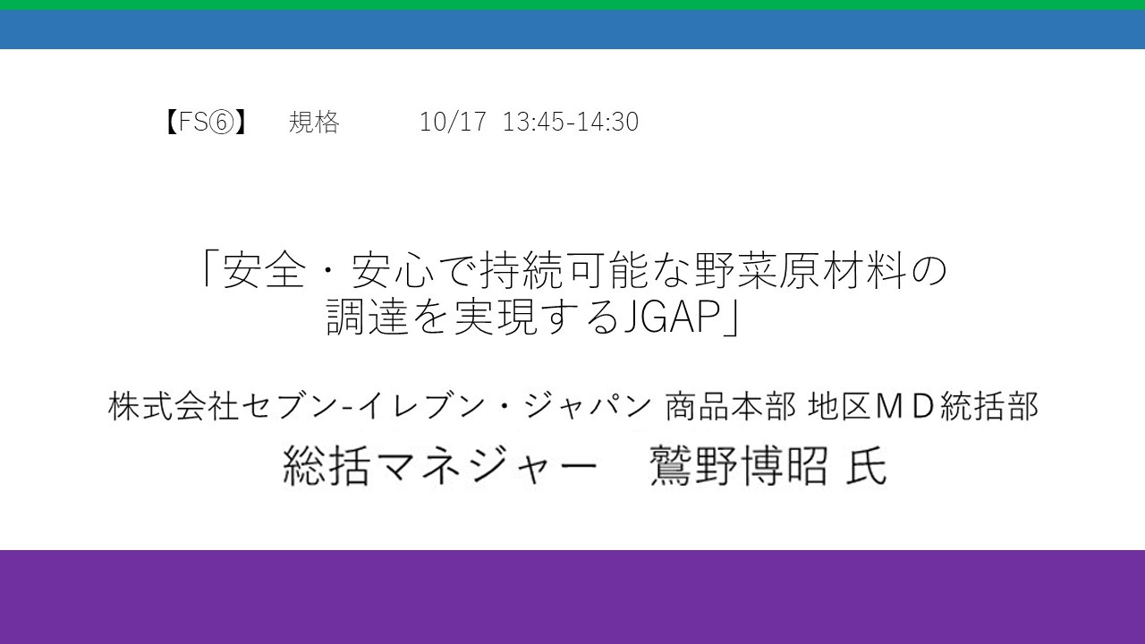 - ◯安心安全が見える化できるGAP認証の普及が大切であること、セブンイレブン様の取組みが消費者目線でまじめに取組まれていることが分かり、自身の仕事との接点を見つけて行きたいと感じました。