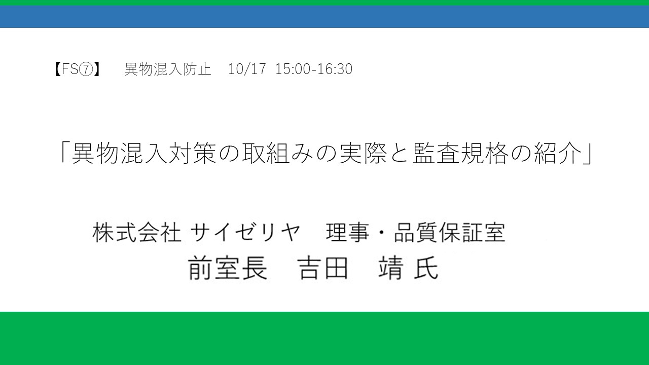 「異物混入対策」の取組みの実際とAIB食品安全規格の紹介